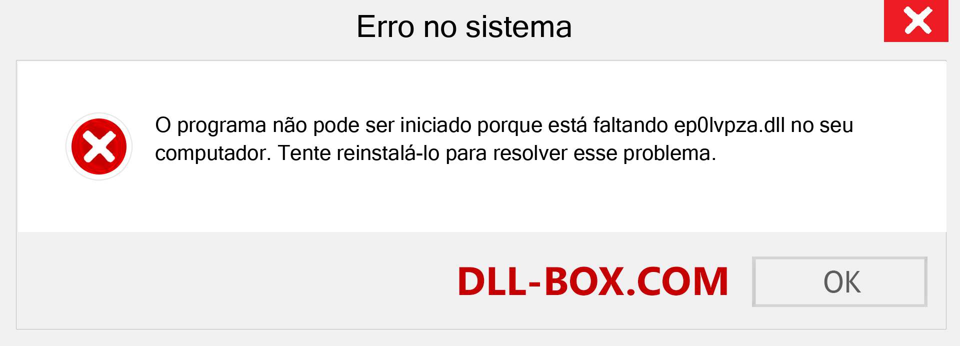 1. O programa não pode ser iniciado porque está faltando ep0lvpza.dll do seu computador. Tente reinstalar o programa para resolver este problema.
